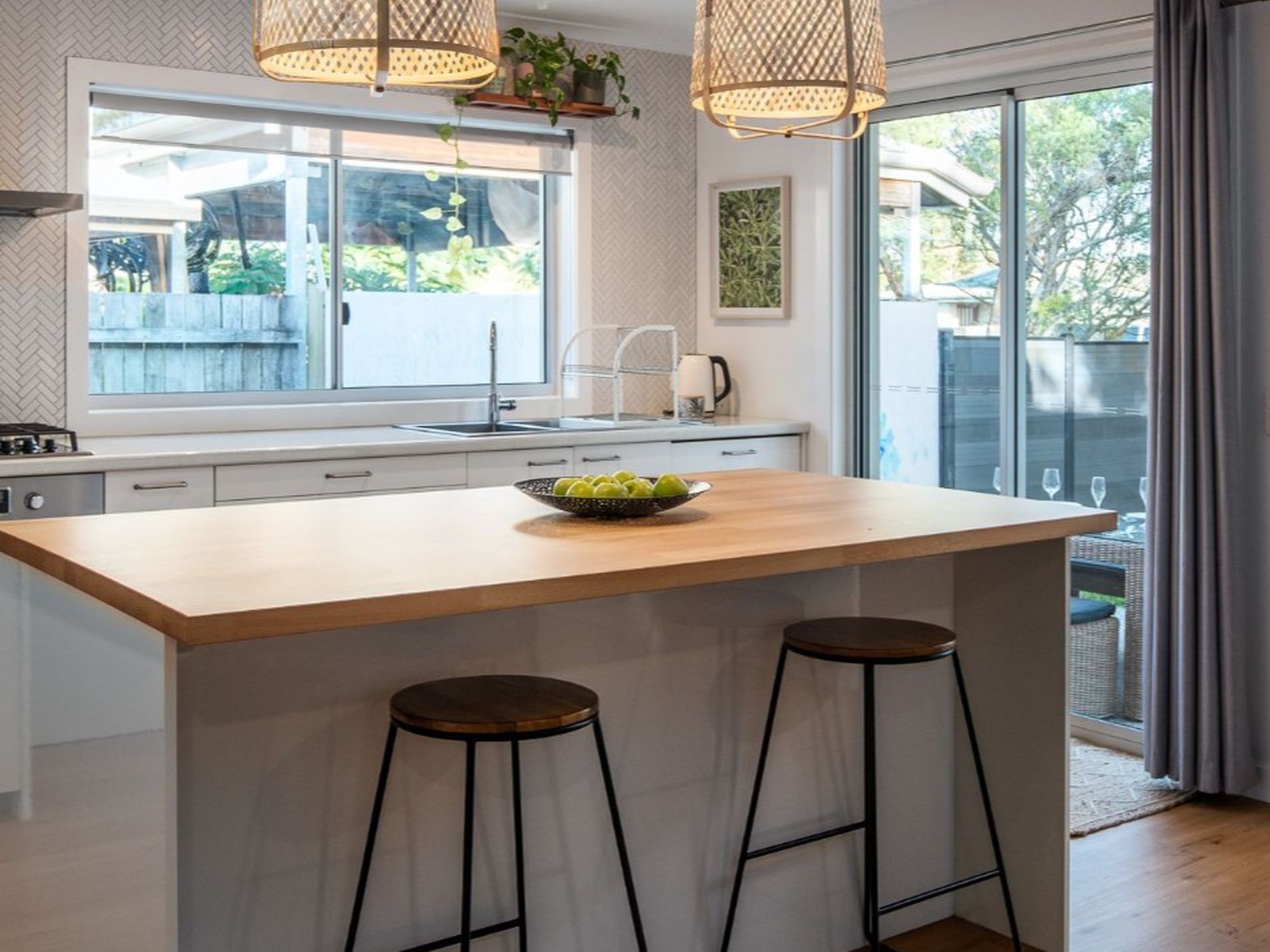 - Stylish kitchen with gas cooktop, breakfast bar and servery