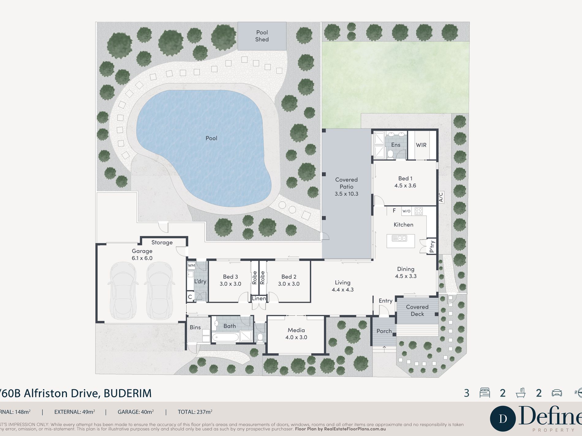 • North-facing lagoon-style pool surrounded by fully fenced, landscaped gardens